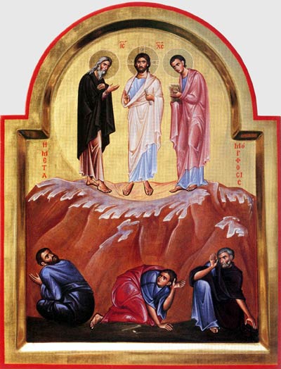 Взяв Петра, Иоанна и Иакова, взошел Он на гору помолиться. И когда молился, вид лица Его изменился, и одежда Его сделалась белою, блистающею. И вот, два мужа беседовали с Ним, которые были Моисей и Илия; явившись во славе, они говорили об исходе Его, который Ему надлежало совершить в Иерусалиме. Петр и бывшие с ним отягчены были сном; но, пробудившись, увидели славу Его и двух мужей, стоявших с Ним. И когда они отходили от Него, сказал Петр Иисусу: Наставник! хорошо нам здесь быть; сделаем три кущи: одну Тебе, одну Моисею и одну Илии, — не зная, что говорил. Когда он говорил это, явилось облако и осенило их; и устрашились, когда вошли в облако. И был из облака глас, глаголющий: Сей есть Сын Мой Возлюбленный, Его слушайте. Когда был глас сей, остался Иисус один. И они умолчали, и никому не говорили в те дни о том, что видели.
